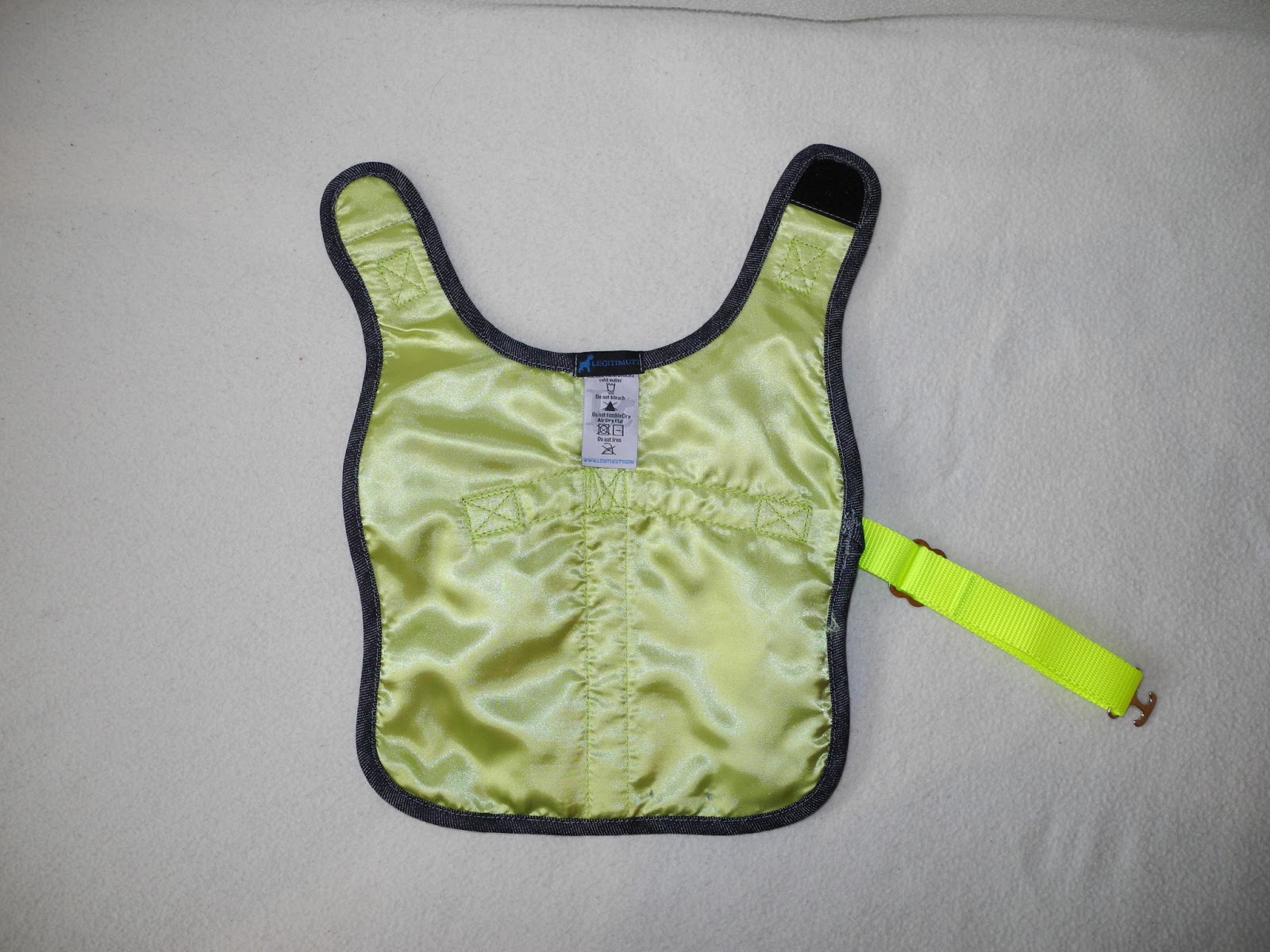 Beschreibung des LEGITIMUTT Regenmantel: "Inspiriert durch Reitanlagenjacken, verwandelt der LEGITIMUTT Regenmantel regnerische Tage zur Modenschau. Mit Jeansstoff entworfen, dazu Neongurtband und Innenfutter, und klarem Vinyl, ist dieser wasserdichte Mantel eine wunderschöne Lösung bei feuchtem Wetter. Die Top Mode ist gewiss bei Hunden angekommen."